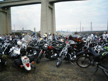 飲食関係のほかバイカー雑誌などでよく目にするアパレルやパーツ・ショップのテントが軒を並べていた。